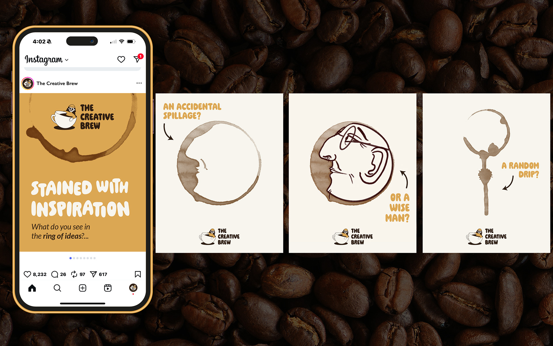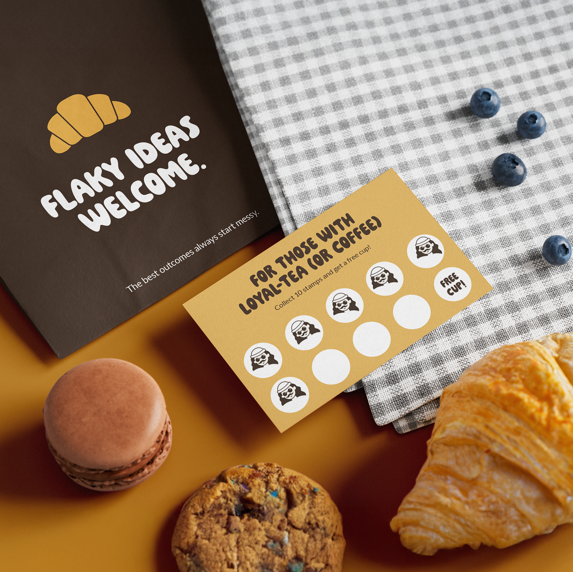 The illustrative style from the logo is carried across all of the brand’s touchpoints, from playful sketches on social media to menu design and packaging. Copywriting is fun, pun-filled and inspiring, often with the simple goal of just making customers smile. The cafe is associated with joy and creativity through interactive social series like “Stained with Inspiration” where customers are encouraged to find art in the mundane, like coffee ring stains. By fostering a sense of community, the brand builds loyalty and creates a space filled with creativity.