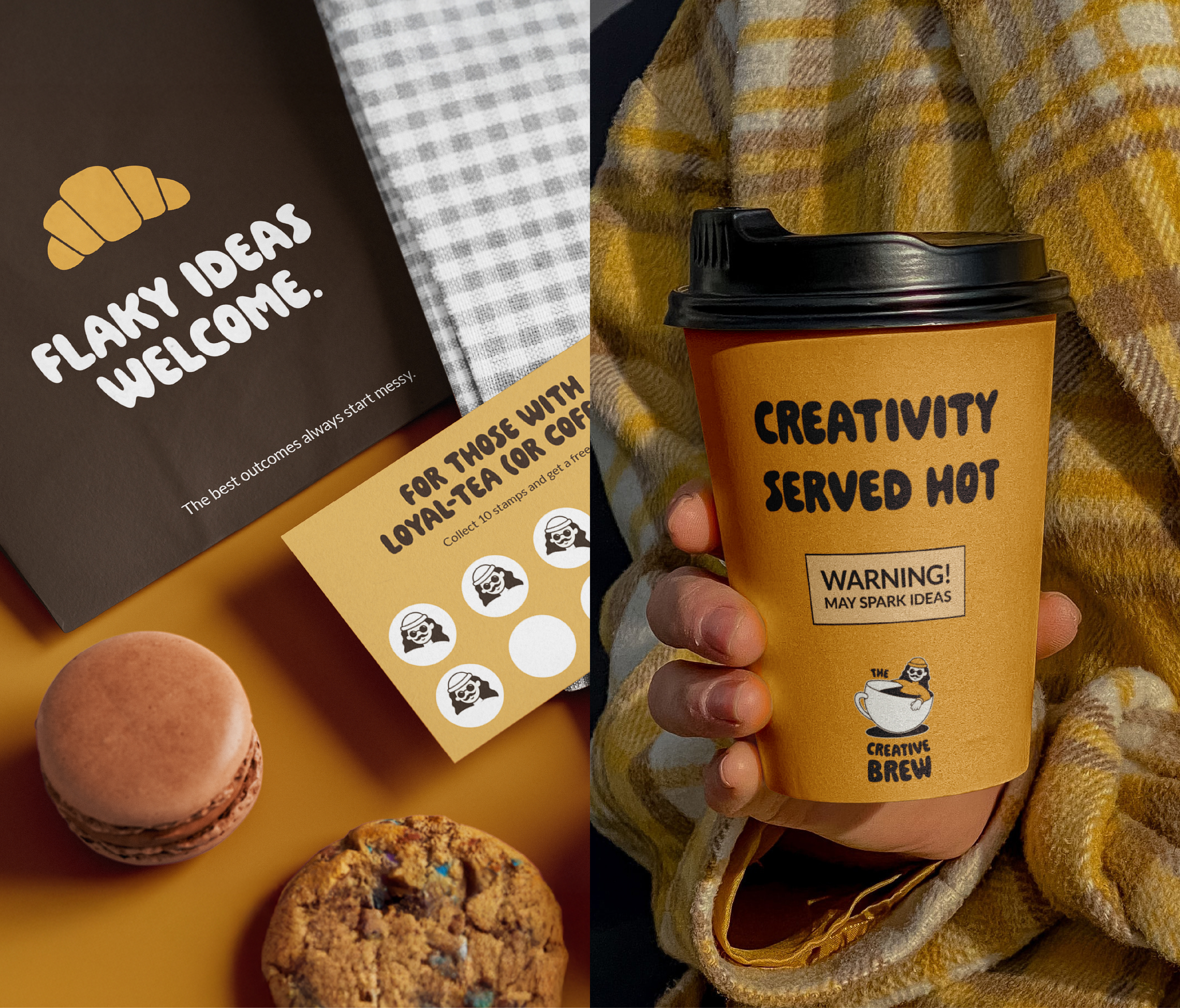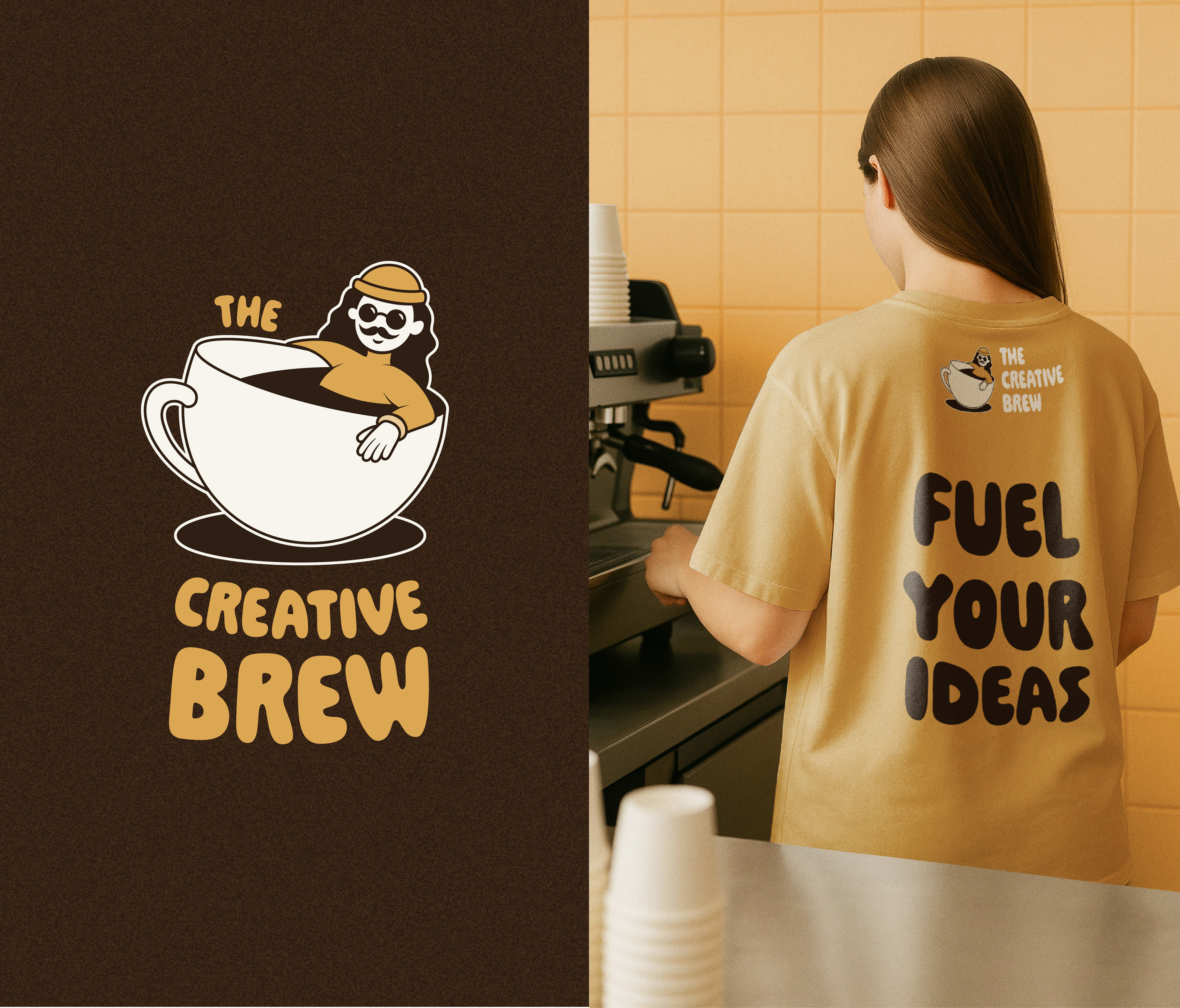The Creative Brew is a concept coffee shop designed as a place for creatives to connect, and collaborate. More than just somewhere to grab a coffee, it offers a welcoming space where ideas can be shared and creativity is brewed inside every cup. The brand is playful, warm, inclusive and deeply focused on building community.